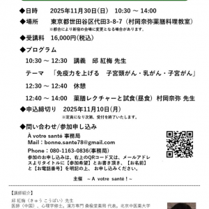2025.10.01 お知らせ テーマ 「免疫力を上げる 子宮頸がん・乳がん・子宮がん」