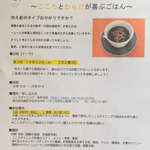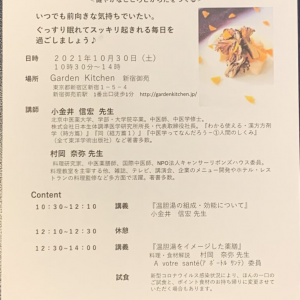 お知らせ 2021 10月20日 第3回【こころダイニング薬膳講座】~こころとからだが喜…